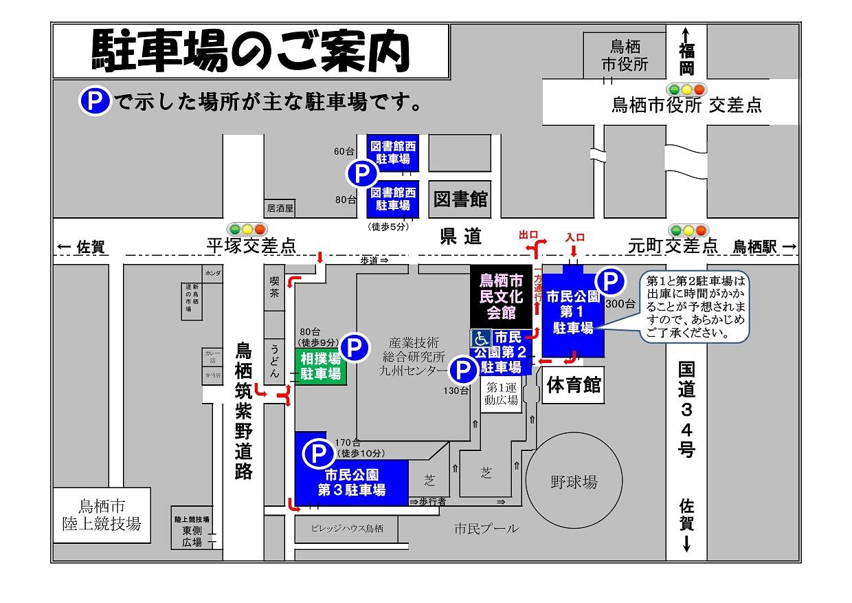 ※駐車場、公共交通機関についての詳細は、鳥栖市ホームページを、ご確認ください。