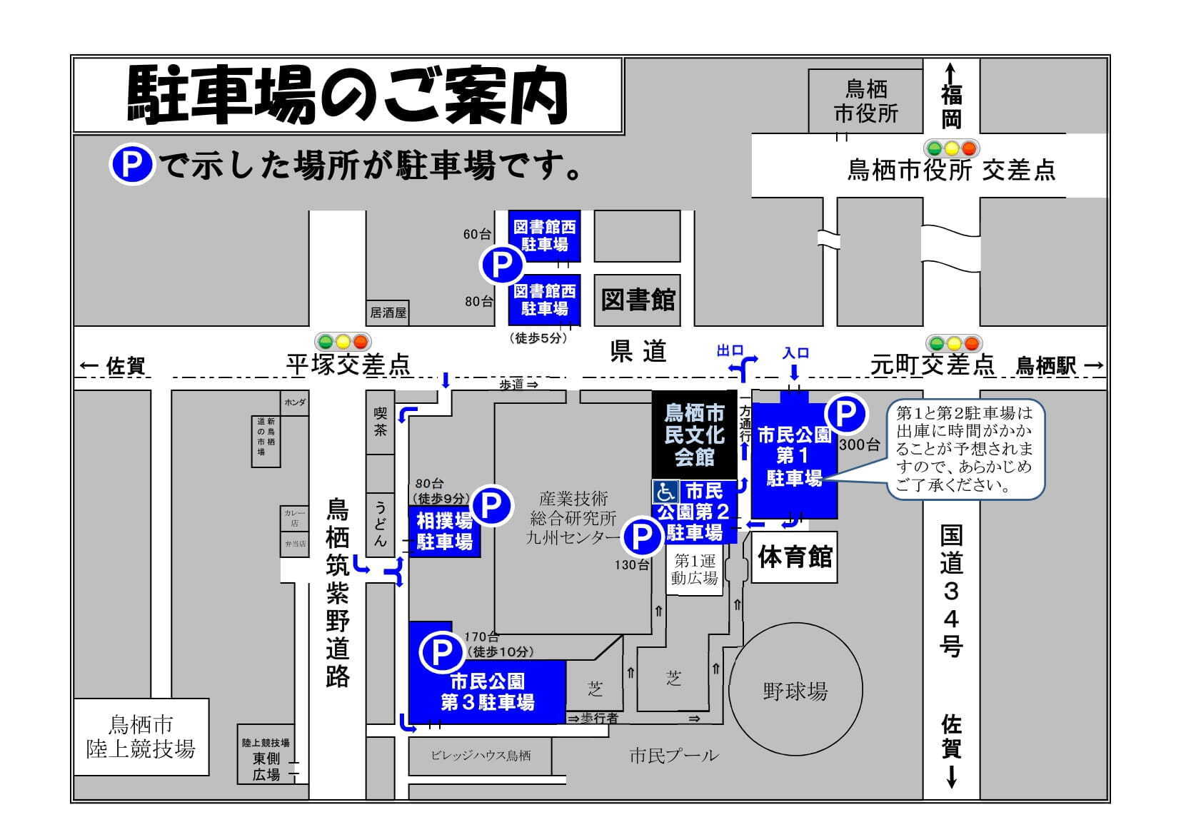 また、第1駐車場と第2駐車場は出庫にお時間がかかることが予想されますので、あらかじめご了承ください。